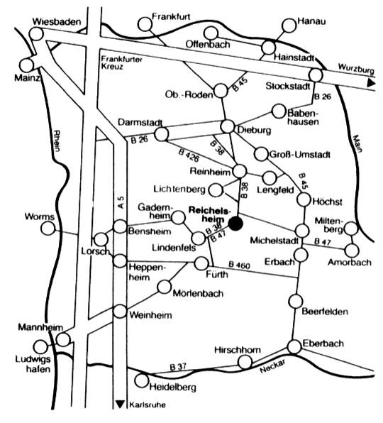 Mit dem Auto: Von Norden kommend, Autobahn A5, Ausfahrt Bensheim, weiter B 47 über Lindenfels nach Reichelsheim. Von Süden kommend, Autobahn A 5, Ausfahrt Weinheim, weiter B 38 über Fürth nach Reichelsheim.
